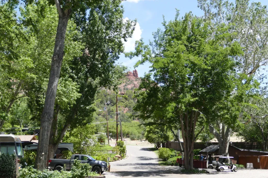 Heute fahren wir eine kurze Etappe bis Sedona. Obwohl alle Campgrounds angeblich voll sind, ergattern wir im Rancho Sedona RV Park eine sehr schöne, aber auch extrem teure Site direkt am Oak Creek für zwei Nächte.